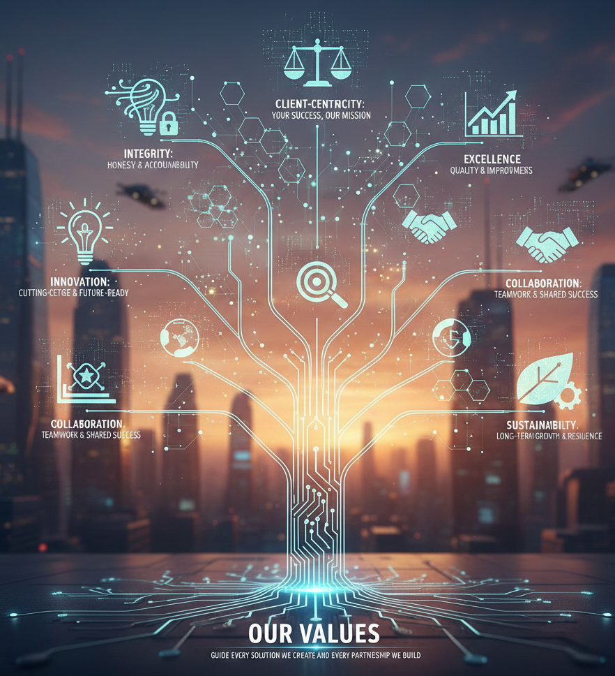 To deliver tailored, scalable, and future-ready technology services that drive operational excellence, customer engagement, and sustainable growth. We achieve this through continuous innovation, exceptional talent, and a client-first approach.